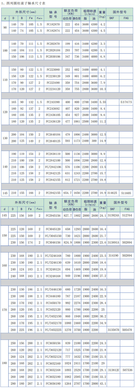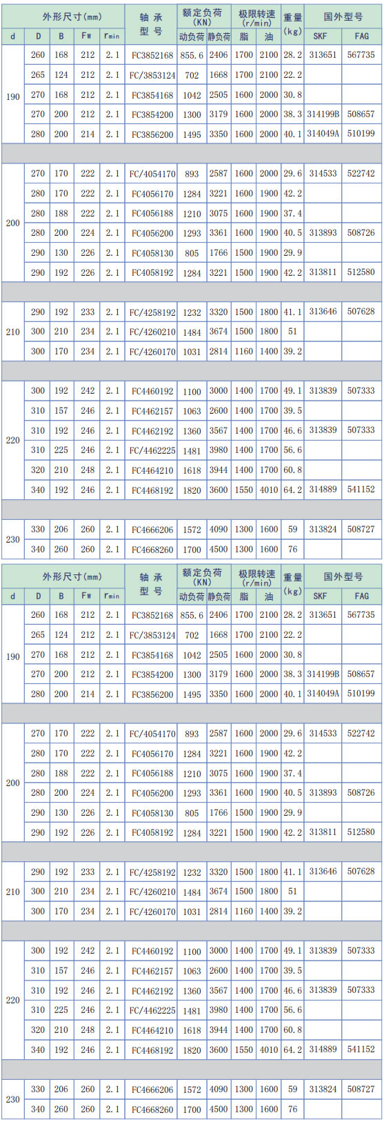 FC型:兩個帶擋邊的外圈,整體內(nèi)圈和梳狀保持架,圓柱滾子;