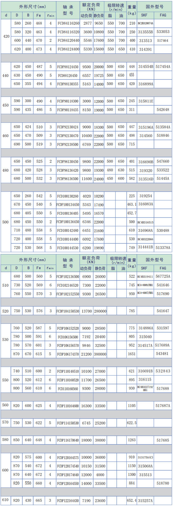 FCD型:兩個帶擋邊的外圈,兩個內(nèi)圈和梳狀保持架,圓柱滾子;